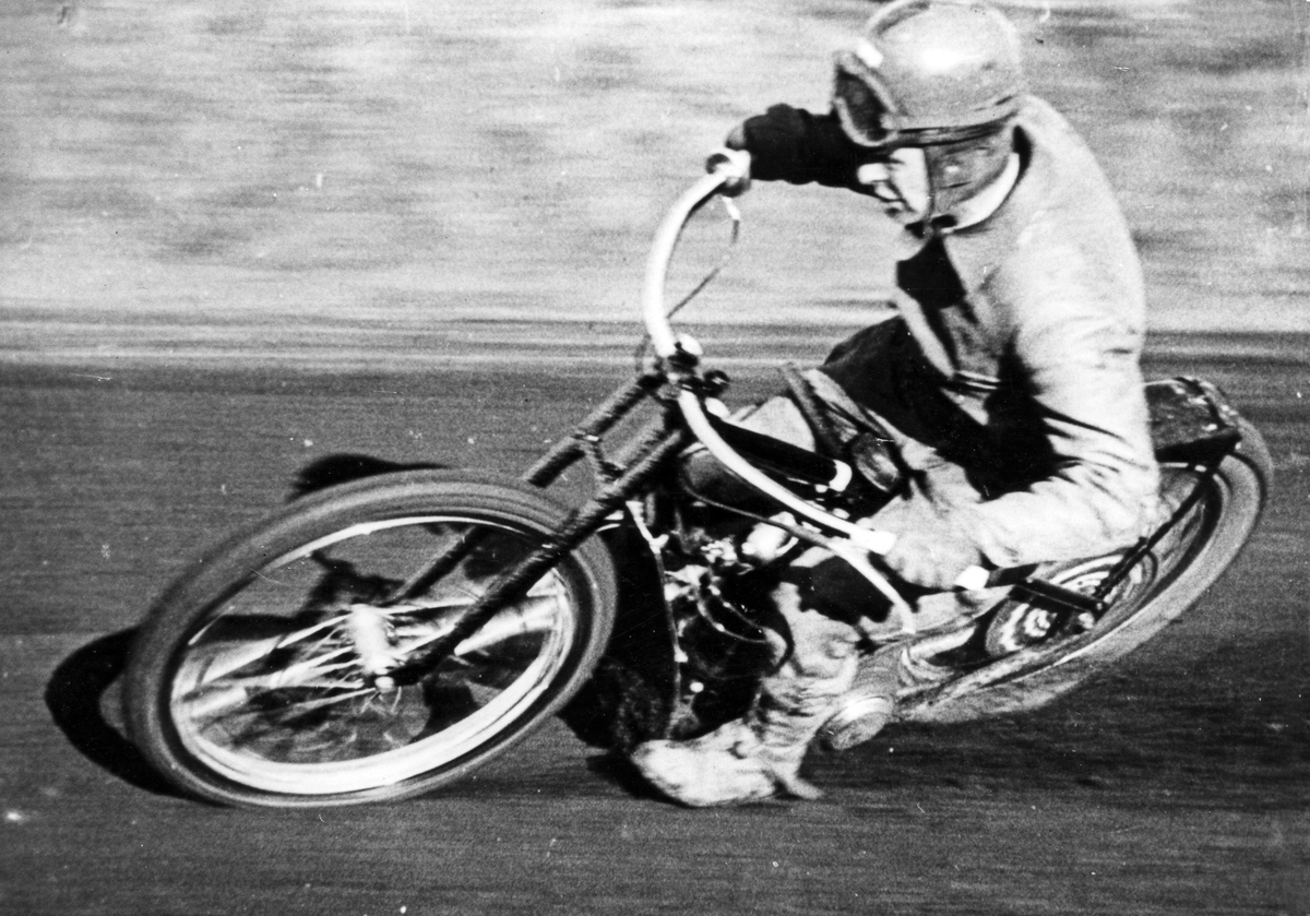 Sven Falkeby i sin typiska framåtlutande stil och som vanligt med spjället helt öppet. 1952.