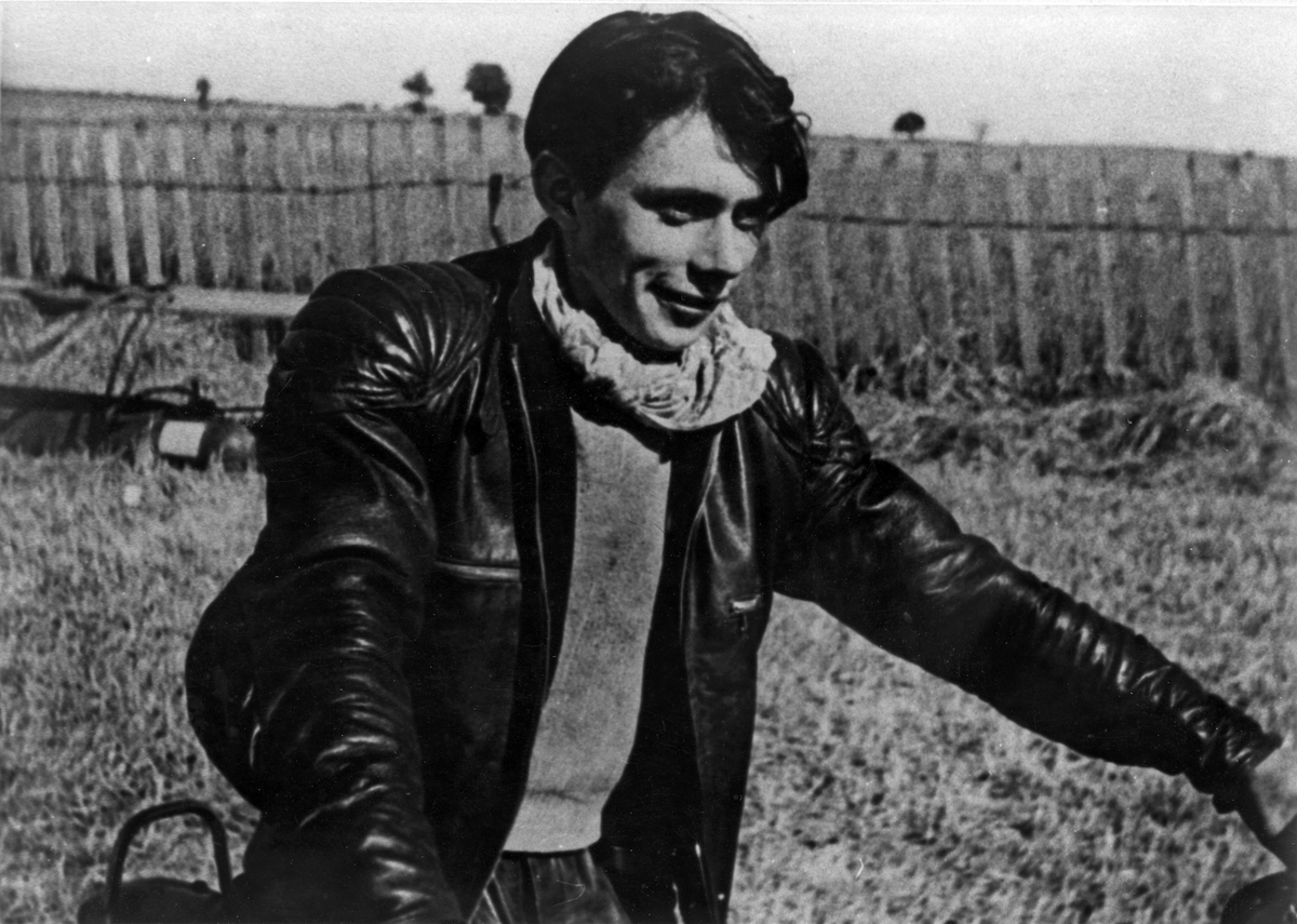 Speedwaydebutant Sven Åke Johansson, 15½ år gammal. Han kör sin första tävling 19 juni 1949.