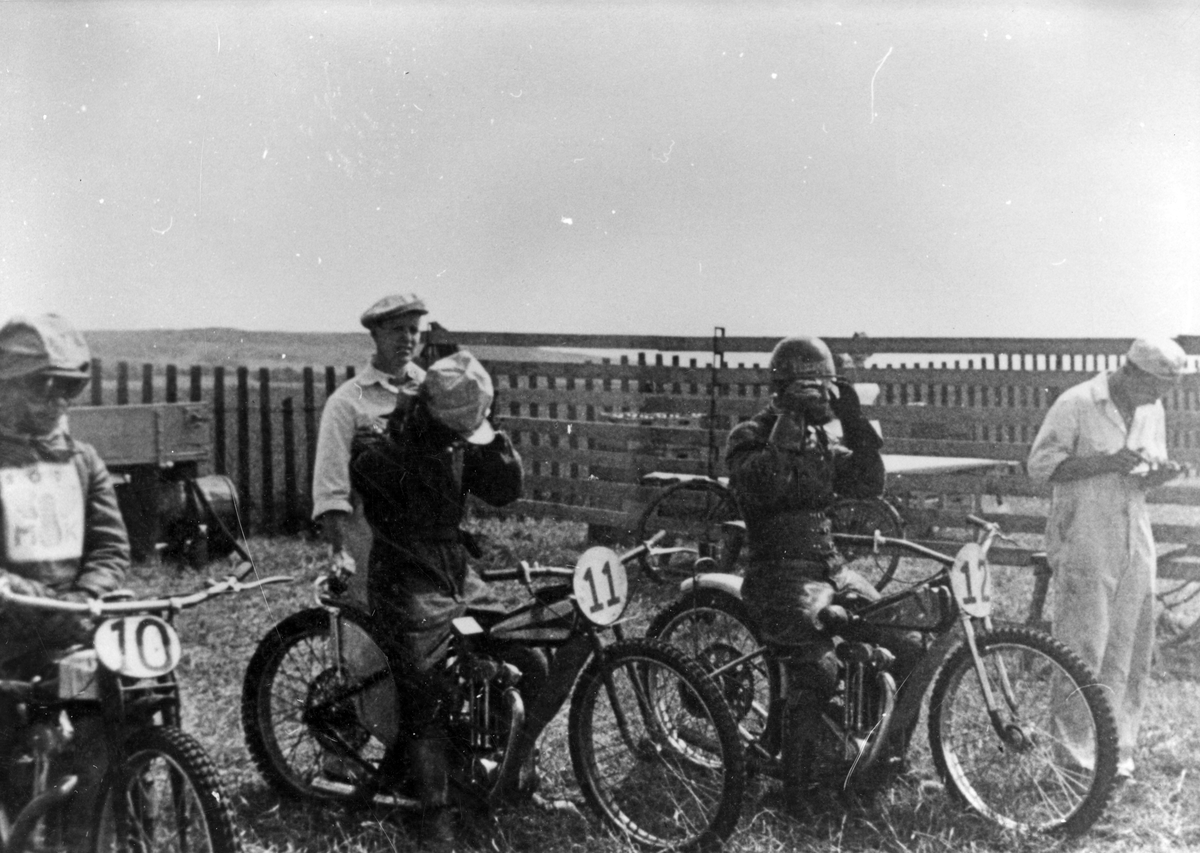 Depåchef Mats Josefsson klar att skicka iväg Sven Falkeby (10), Åke Ahlqvist (11) och Bengt Håkansson (12) ut på banan.