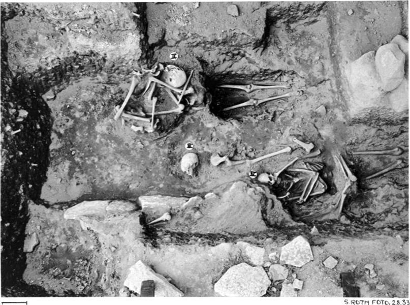 Grav 9. Under utgrävning. Kisthällar uppe t.h. kullersten som en gång borttagits från den resta stenens östsida för att lämna plats åt grav 10.