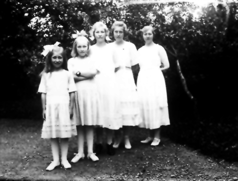 Albert Johanssons i Trädgården döttrar Gunhild född 1912, Astrid född 1909, Signe 1907, Anna 1904, Karin 1902.