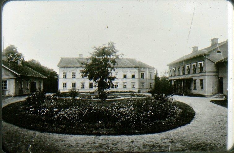 Kv. Läkaren, gamla lasarettet 1893. Falköpings första lasarett öppnades den 15 oktober 1856. Tomt om två tunnland donerades av staden. Ritning till lasarettet utfördes av konduktören Oppman och byggnaden utfördes av fabrikör C.J. Lundberg. Inredningen ombesörjdes av byggmästare C.G. Engblom i Skara.