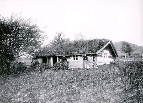 Dahlbergs ryggåsstuga. I bakgrunden konung Sverkers hög.