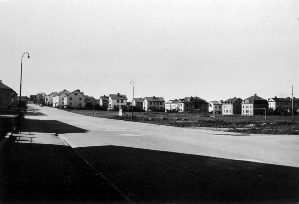 Kv. S:t Matteus, Stadshusplatsen. Platsen för nuvarande Stadshus och Stadsbibliotek. Stadshusplatsen mellan Botvidsgatan och S:t Sigfridsgatan. Bilden visar folkskolans f.d. bollplan. Till vänster om planen går Westerbergsgatan med byggnader. Botvidsgatan 40 och Westerbergsgatan 9, 11 och S:t Sigfridsgatan 17.