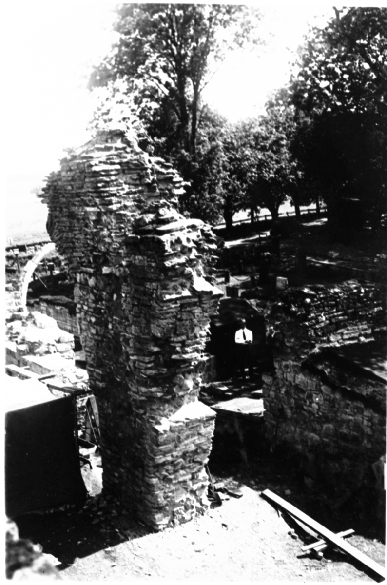 Östligaste pelaren i muren mellan mittskeppet och södra sidoskeppet från nordväst.