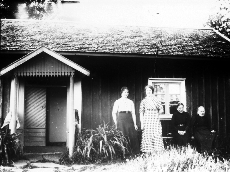 Torpet Lunnen eller Lunnatorp på Brogårdens ägor. Hildur Jonsson, Alva Jonsson-Videborg, "Klara på Lunnen" och okänd (ev. Klaras mor Cajsa, eller Greta Andreasdotter)