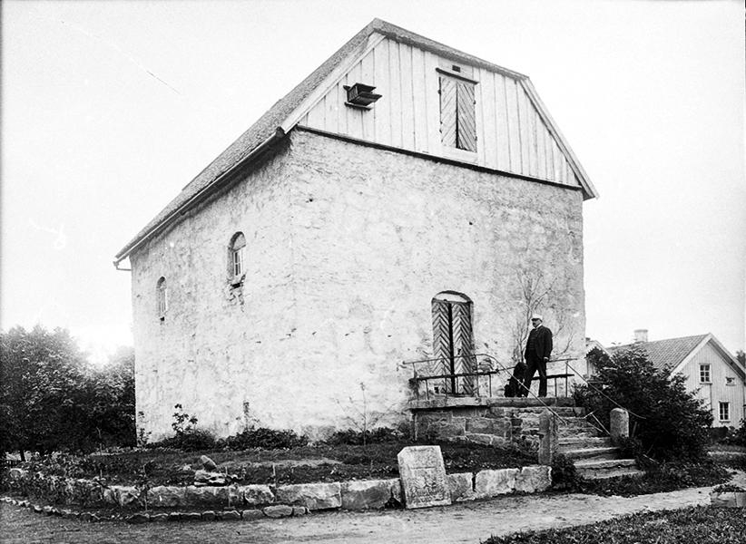 Vinsarps gamla slottsruin. De svarta prickarna i murarna är hål efter kulor under danskarnas belägring.