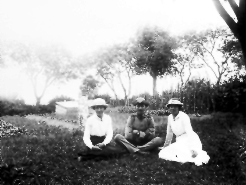 Bonnagården. Syskonen Jenny, Torsten och Ellen Andersson i trädgården.