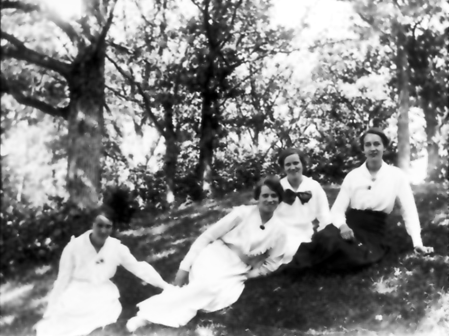 Höge backe i Hasselbackarna. Lisa Thiel, Signe Thiel, Ester Thiel och Mia Hedlund.