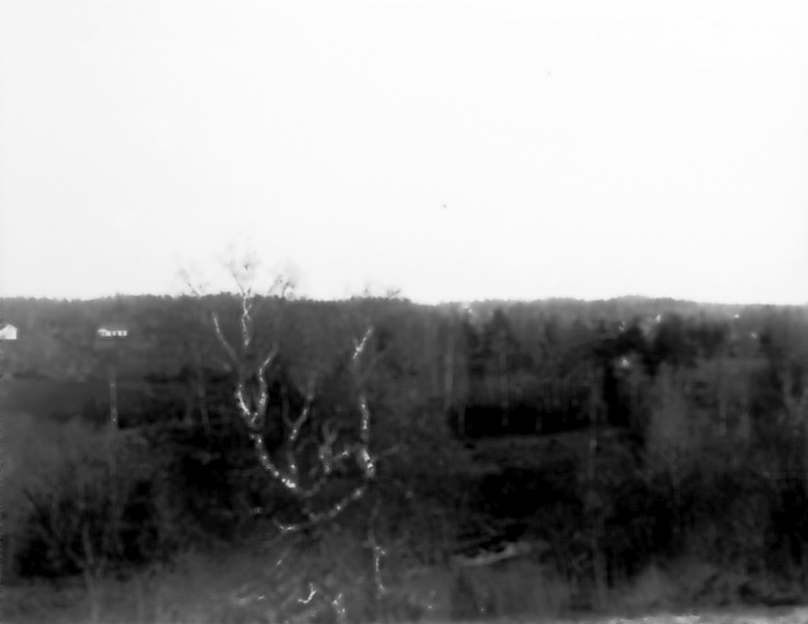 Utsikt från Lellingens backar mot Floby samhälle. Längst t.v. Ekedal (rivet 1987) och Emil Karlssons hus med den gamla ladugården.