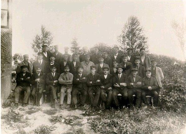 Falköping-Ranten. Stallpersonal omkr. 1920. Övre raden fr.v.: Andersson, Nygren, Lindkvist, I. Andersson, Fridell, R.Johansson, Ström, G. Josefsson, Johansson, Ljungberg. Mellersta raden: G. Holmkvist, Spångberg, Augustsson, E. Eriksson, Fransson, J. Johansson, K. Öberg, E. Lindstedt, Wallin, Mårten Ung, L. Johansson. Sittande: Källström, Berg, Torell, K. Ljungkvist, Sv. Kron, Daag, Olsson, Wallin, Johansson, Andersson.