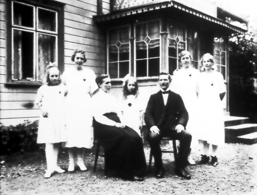Hos Södergrens, Storgatan 25, Albert Johansson med frun Betty och barnen Astrid född 1909, Anna född 1904, Gunhild född 1912, Karin född 1902 och Signe född 1907.