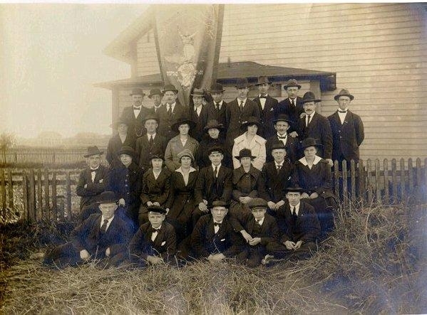 N.O.V. Verdandi 1923. Nedre raden: Lindstedt, Anders Johansson fr. Bestorp, Andersson, Evald Band, Göran Johansson, fr. Bestorp. Andra raden: Landqvist, John Landqvist, Frida: Fridolf, Ella Andersson, Valborg, U.S.A. Fridolf, Herbert Johansson, Svea Vallman, Andersson, Ivar Andersson, fröken. Tredje raden: Lundin, Frida Hedberg Bäckman, Elsa Karlsson, Ellen Lundin, Gerda Dahl, Hjalmar. Övre raden: Lager, Gustav Johansson, Rickard Stark, Thure Lidén, Mauritz Nilsson, Sven Karlsson, Axel Millkvist, Paul Johansson, Karl Söderberg, Edvin Gustafsson, Helge.