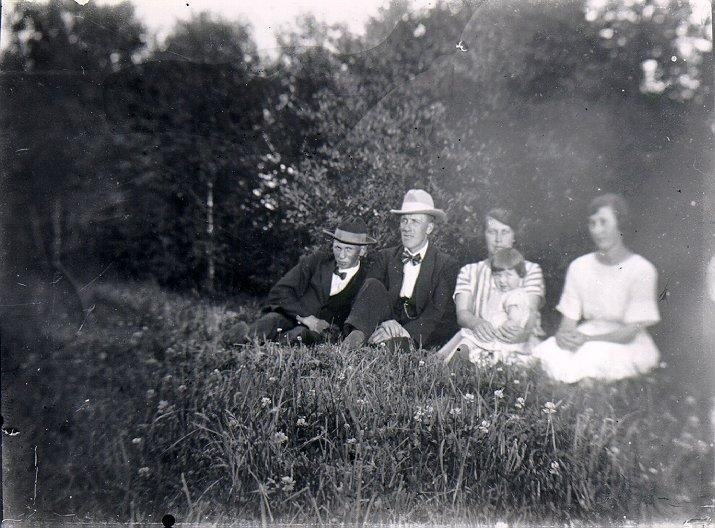 Från vänster: Lamberg från Stockholm, mejerist Torsten Claesson, Döve, Börstig. Berta och Ulla Lamberg, Stockholm. Mejerska Elsa Claesson, Döve, Börstig.