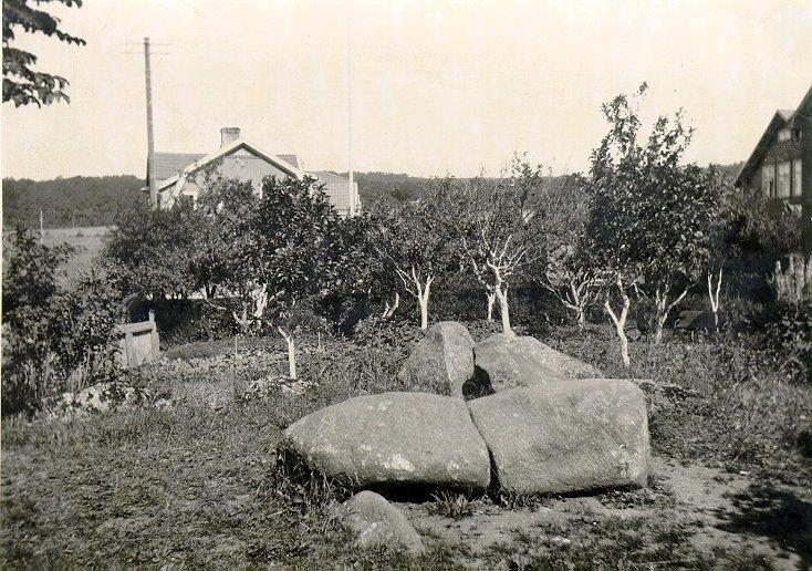 Hörnet av Scheelegatan - Torstenssongatan. Ängshögens södra gånggrift. Efter åverkan 1885 återlades de borttagna stenarncket av gravkullen fick borttagas att en meter skulle finnas kvar mellan högkanten och gångens yttersta häll. Man tog emellertid bort intill stenen.