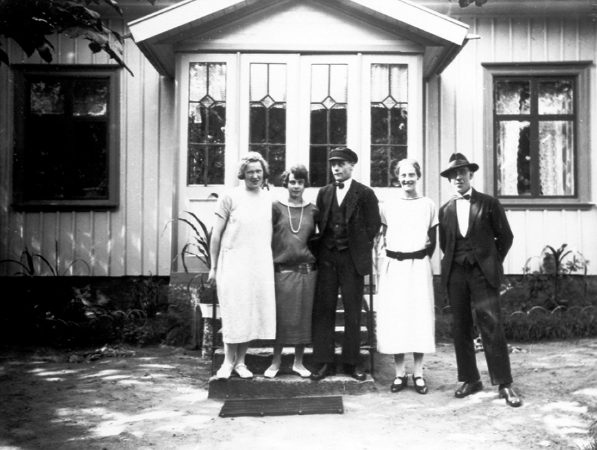 Inga Johansson (Inga på Floda), Emmy, Ivar och Anna wahlström, Erik Gegerfelt. Hos Wahlströms på Köpmangatan 6.