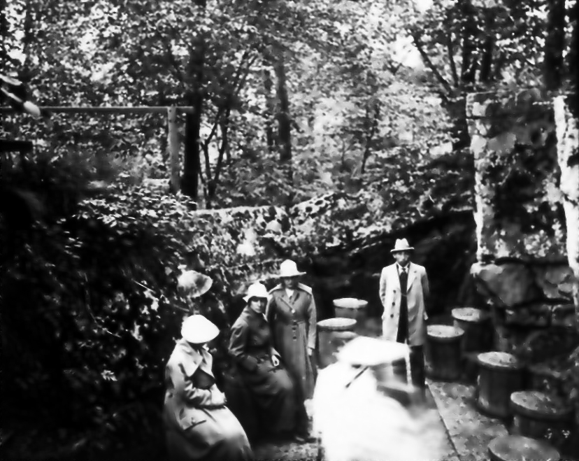 Apostlagrottan, Kinnekulle. Troligen Flobybor på utflykt. t.h. chauffören Erik Gustavsson.