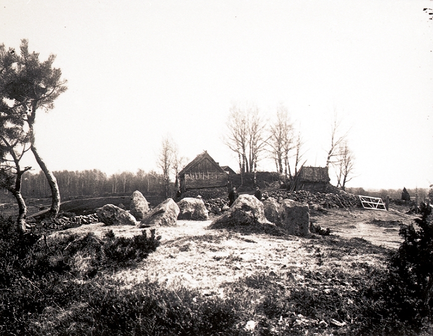 Domarringen på "Lellinges" backar. I bakgrunden torpet Halleberg under Östergården. Här bodde Johannes Svensson "Lellingen" och Lovisa Persdotter, De hade 10 barn varav 5 emigrerade. Torpet såldes på auktion 1927.