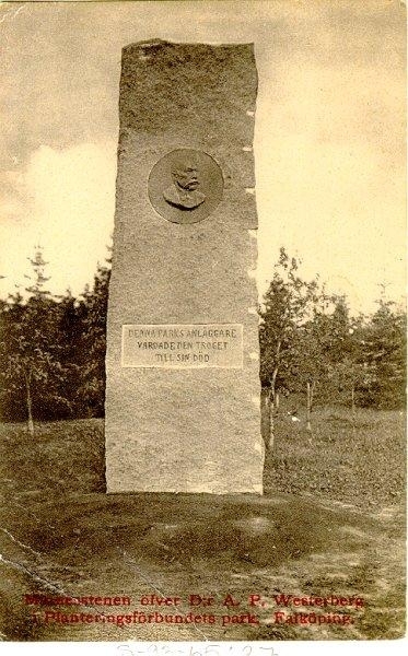 Planteringsförbundets Park. För stadens förskönande genom planteringar och parkanläggningar bildades ett Planteringsförbund, som antog och fastställde stadgar den 28 oktober 1870. Förbundets förste ordförande blev doktor Anders Petter Westerberg. Med aldrig sviktande intresse och kärleksfull omsorg vårdade och utvidgade han planteringarna till sin död år 1909. Först efter 14 år eller 1884 kunde man inköpa det nuvarande parkområdet - omkring 6 tunnland. Därefter kunde planering och planteringar snart börja. Främst av ekonomiska skäl gick det långsamti början. I början av 1900-talet anordnades en två meter djup damm - Jungfruhålan, vilken sedan en person skänkt två svanar, fick namnet Svandammen. Inom parken ligger stenåldersgraven Kyrkerörs gånggrift. Från Ranten har inflyttats en offersten från hednatiden den s.k. Balderstenen. Vaktmästare för anläggningarna anställdes år 1909, då även särskild bostad för denne uppfördes. Kort efter doktor Westerbergs död blev en minnessten avtäckt.