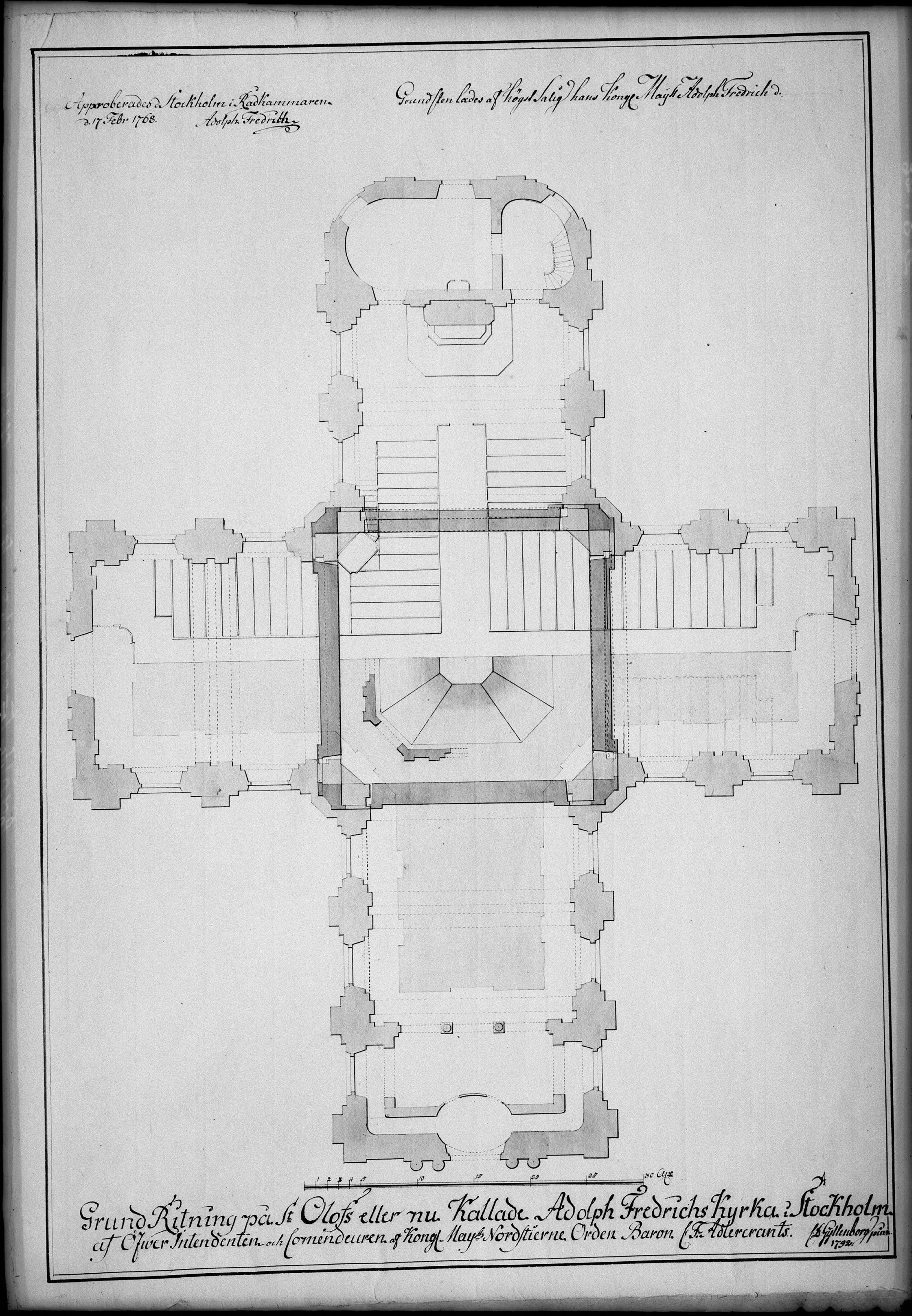 Kyrkan sedd ovanifrån i genomskärning, efter ritning i Uppsala universitetsbibliotek.