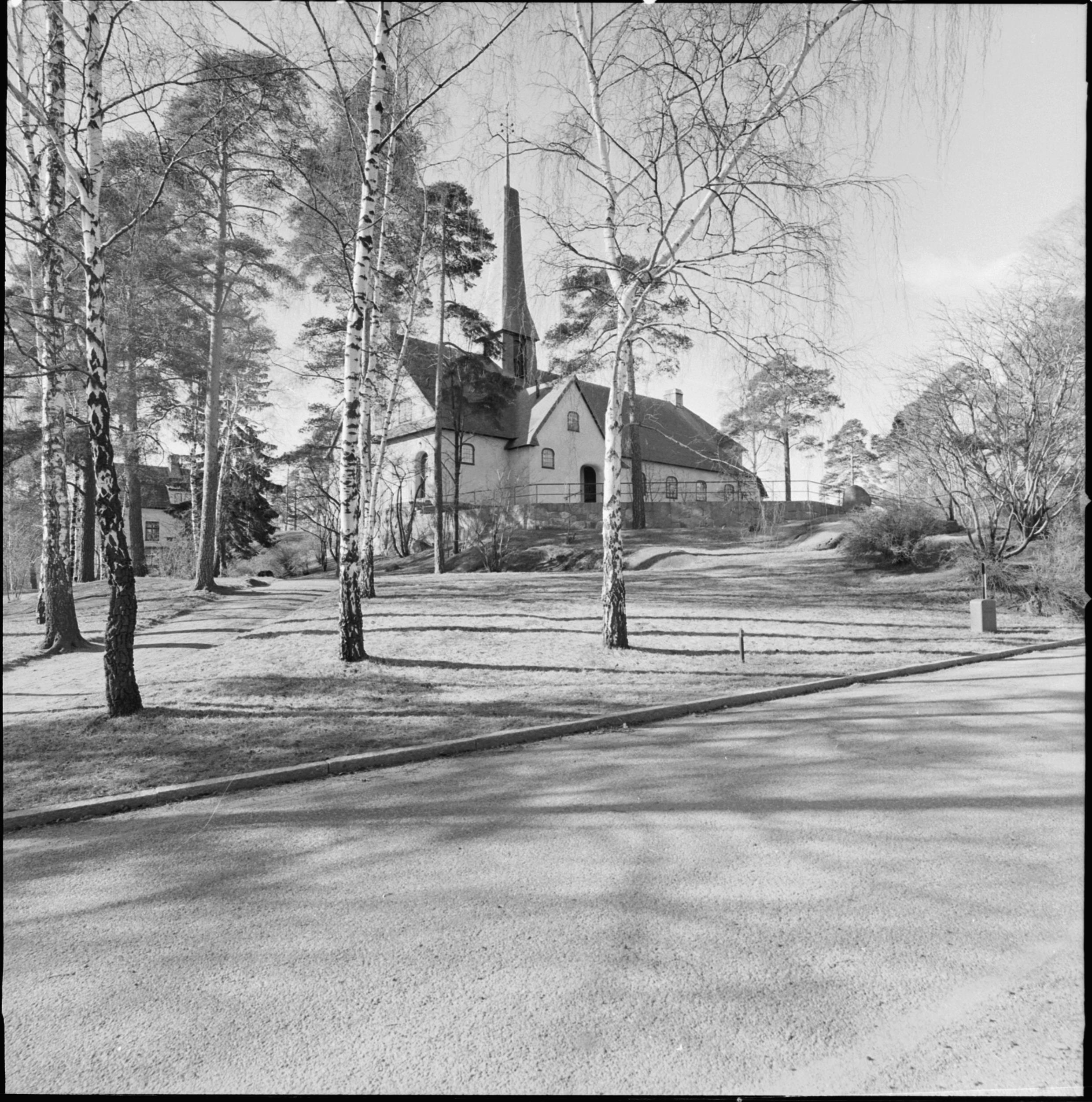 Kyrkan och dess omgivning mot nordväst.