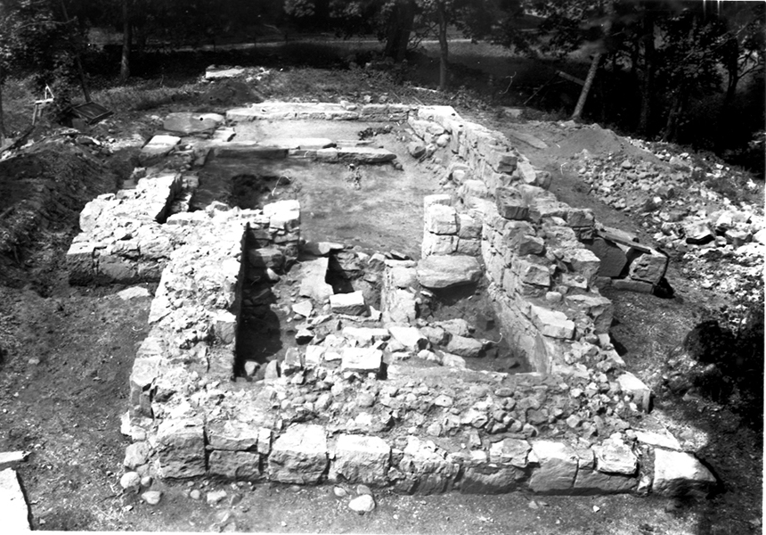 Kyrkoutgrävning i Bjärka. Kyrkan från öster.