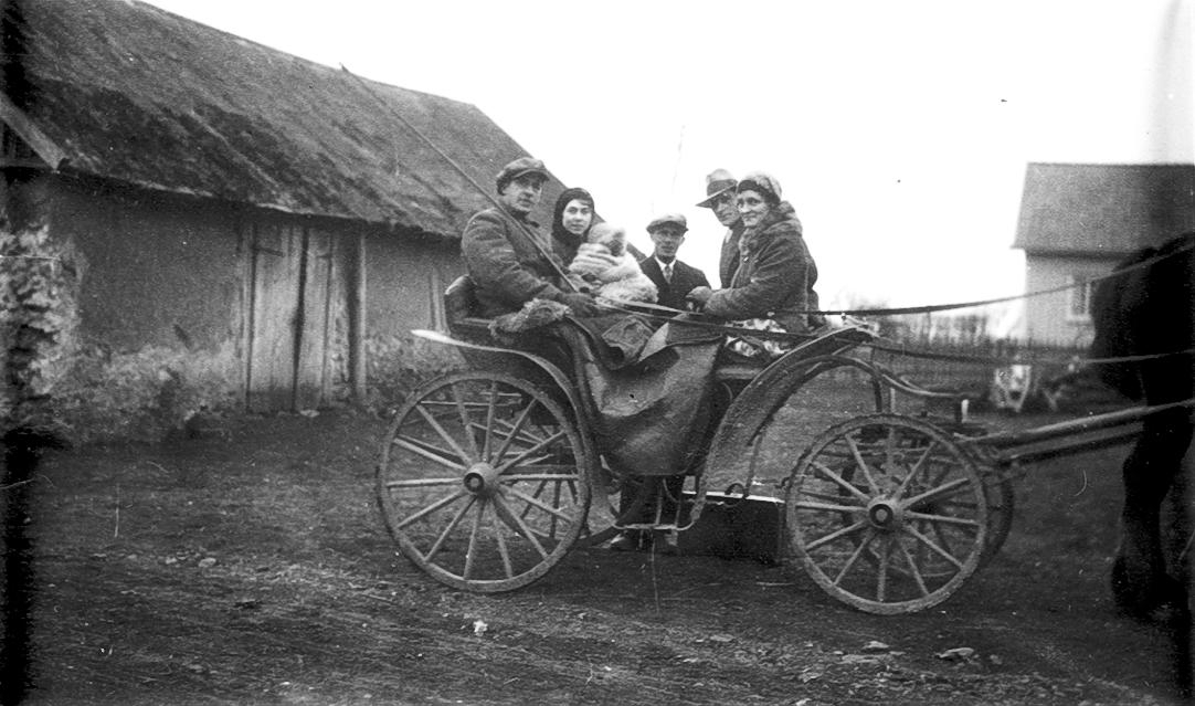 Besök från Sörgården på väg till stan vid Ledsgården. Hilmer Jonsson i mitten 1920-talet.