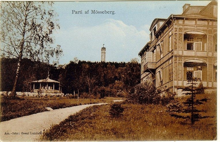 Vintersanatoriet och Hasselbacken. I bakgrunden Bredablick och utsiktstornet. Färglagt foto.