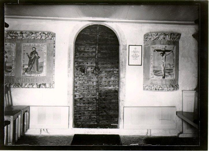 Oidentifierad kyrkport och krucifix.