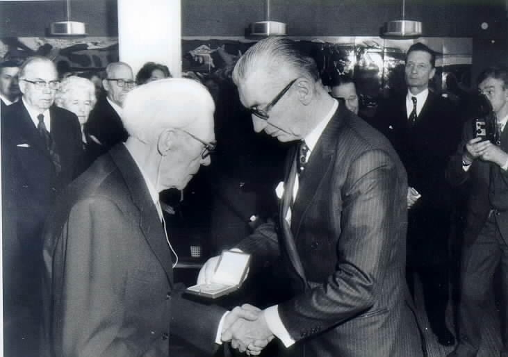 Landshövding von Sydow överlämnar Arthur Hazelius-medaljen till Gustaf Ewald.