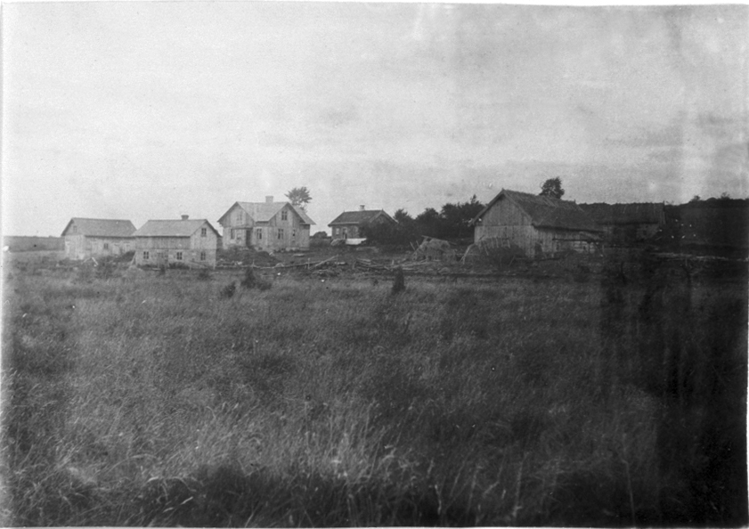 Galjen i Hornborga med dess nya och gamla åbyggnader. Obs. den torvtäckta stugan.