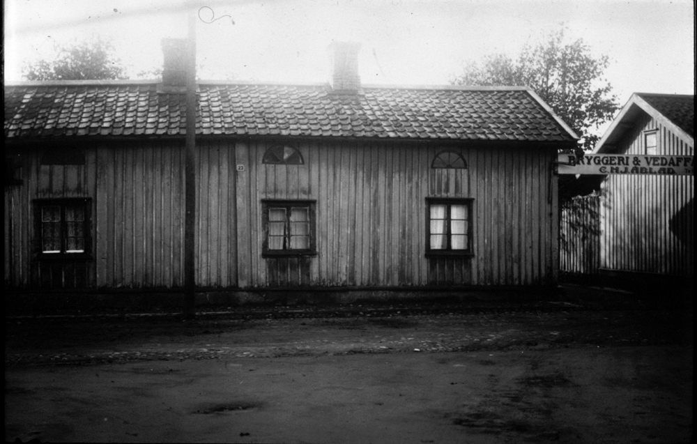 Kv. Plåtslagaren, Nygatan 21. Bryggare Perssons hus vid Köttorget, senare Åblads. Rivet 1935. Gårdsinteriör. "Ett av stadens äldre svagdricksbryggerier".