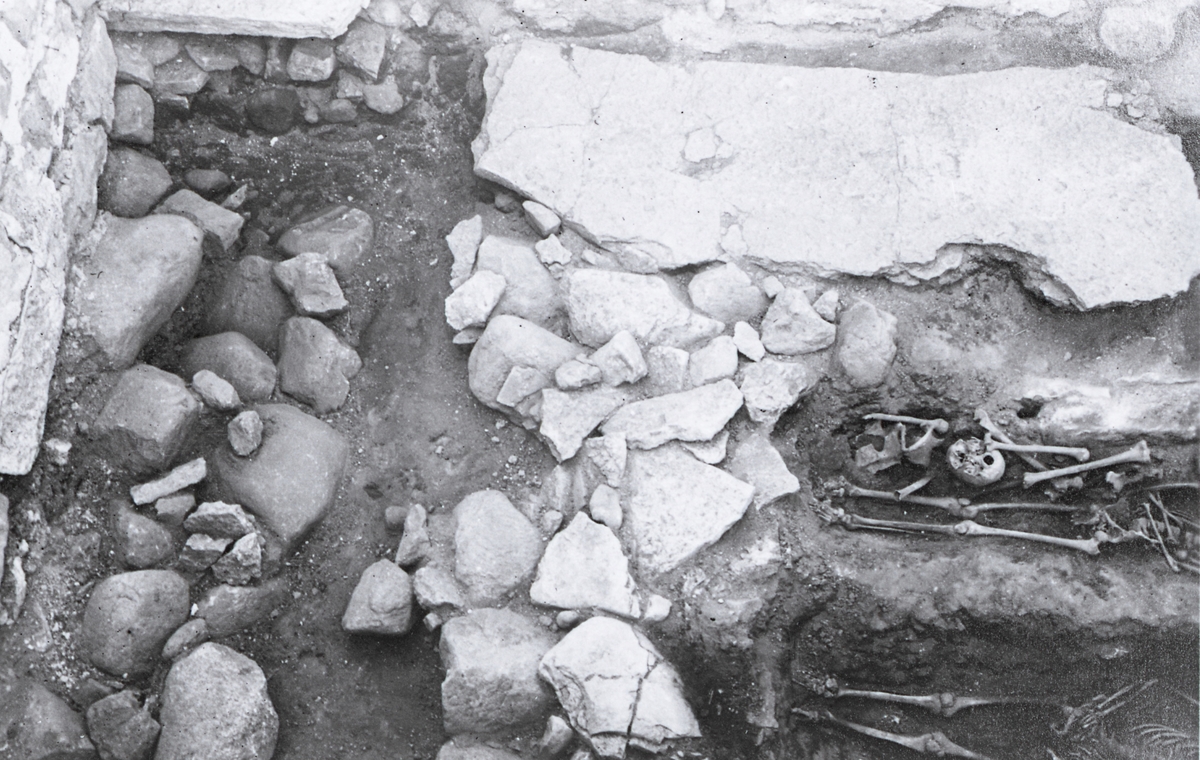 Kapitelsalen. Sö. hörnet sedan golvhällarna borttagits.