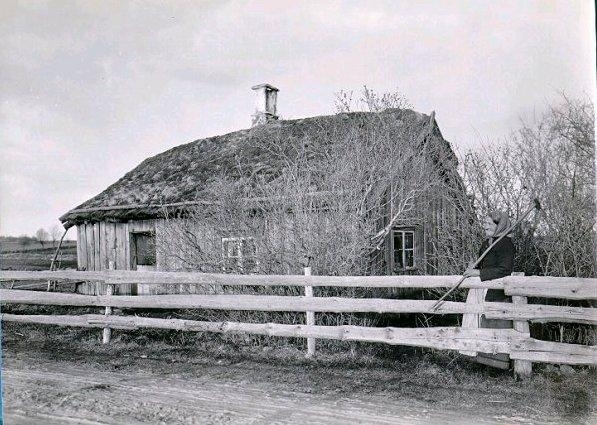 "Surkesas" ryggåsstuga. Observera att dörren består av två halvor, en övre och en undre.