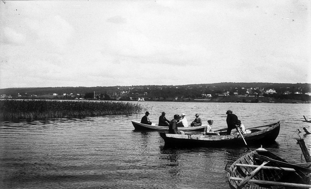 Flobybor besöker Brunnsnäs vid Ulricehamn. Man rodde eller åkte motorbåt från Ulricehamn till Brunnsnäs.