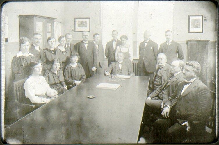 Lärare vid Falköpings samrealskola.1. Lärarna är från vänster runt bordet: pastor Öman, Gideon Arvidsson, Alfred Hallenius, Jonas Haglund, Rödin, rektor Drakenberg, Samuel Qvänsel, Henning Johansson, Gust. Svensson, Wagnér, Lindqvist. Lärarinnorna är: ?. Andra namnuppgifter: fr. höger sittande: Lindkvist, Sixte?, Harald Wagner, Gustav Svensson, Bernt Drakenberg, M.S af Ekenstam (Ekensten)?, Greta Ringheim, Elsa Wange g. Hill. Stående fr. höger: Henning Johansson, Samuel Qvänsel, Karin Jörlin, Martin Brunnander, Jonas Haglund, Alfred Hallenius, Gideon Arvidsson, Signe Öimark?, Ingrid Carlsson? Aron Öman, Karin Thyrén.