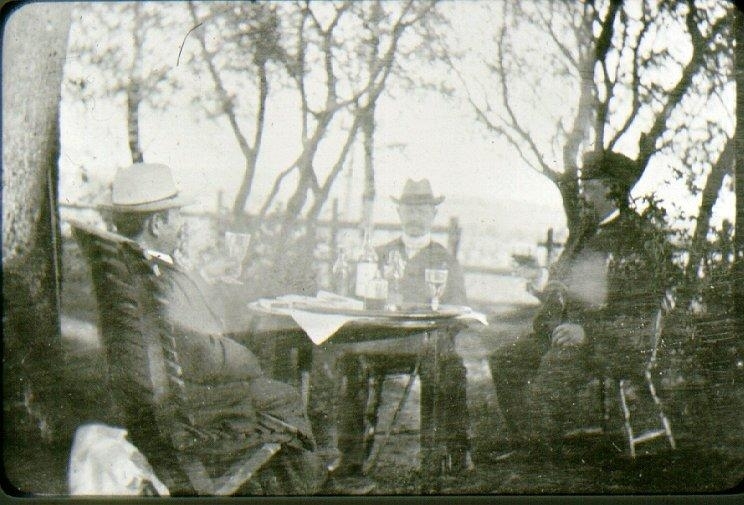 Sällskap från 1890-talet. Från vänster: bankkassör Albert Lundin, donatorn Axel Ekman, bryggmästare G. Wallgren.