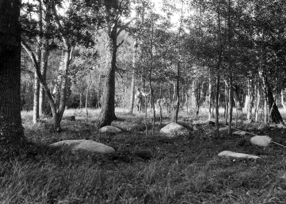 Storegården. Komplex av domarringar i Storegårdens ängar. Nr 2b.i "Gudhems härads fornminnen" av K.E.Sahlström.