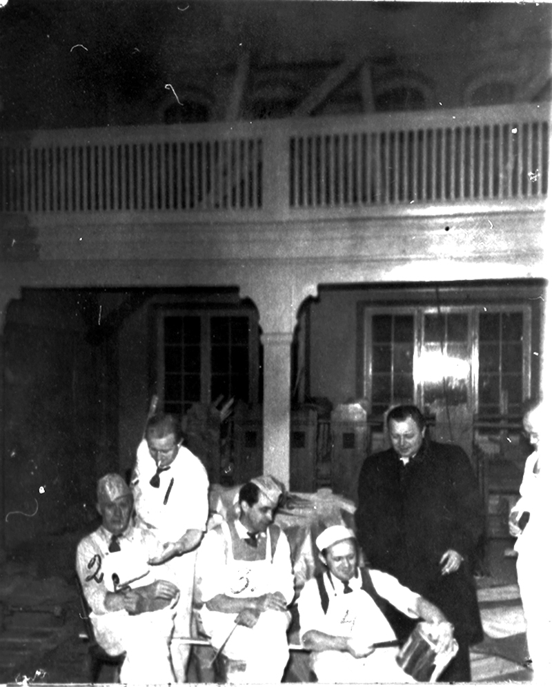 Målare från K. Hj. Karlssons fabrik. Arbete Vara folkhögskola aula.