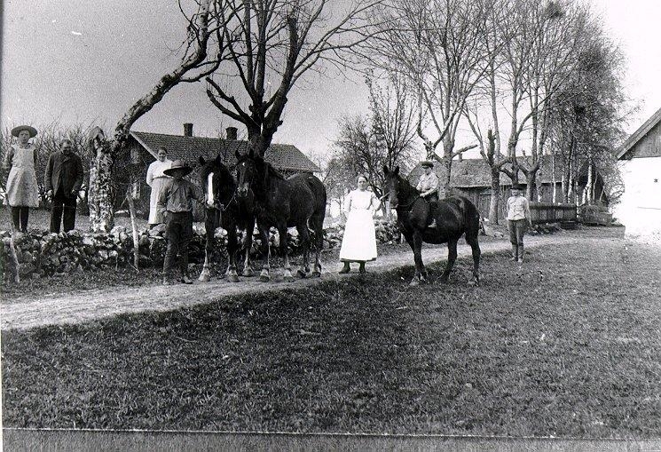 Korpagården i Karleby, Övra 17:4. Personer: Märta, Amandus, Emma, Erik o Karl, andra personer på fotot okända.