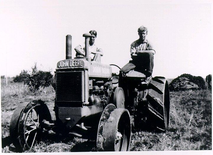 Risholmen 1940. John Karlsson med traktor för körning på mossen.
