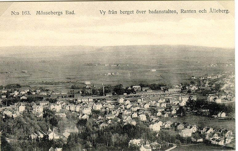 Utsikter från bergsplatån mot Ålleberg. Mössebergs bad. Vy från berget över badanstalten, Ranten och Ålleberg.