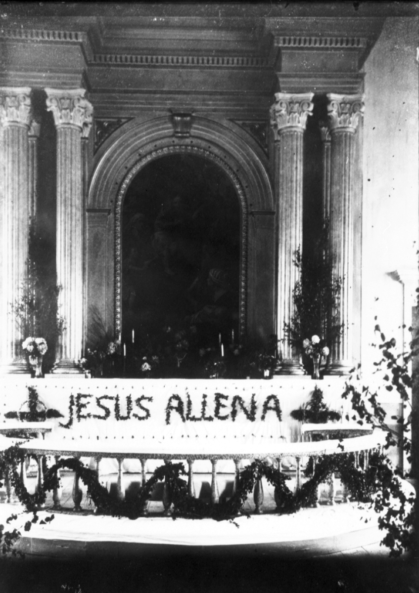 Floby kyrka klädd för konfirmation.