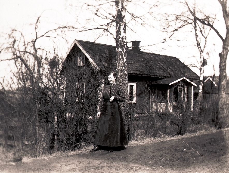 Lilla stugan i Bonnagården. Anna Stina Johansson, blev änka 1896 då mannen Anders Berglin omkom i ett ras i en grusgrop. Sex barn. Bodde 1901-09 i Österfärnebo i X län.