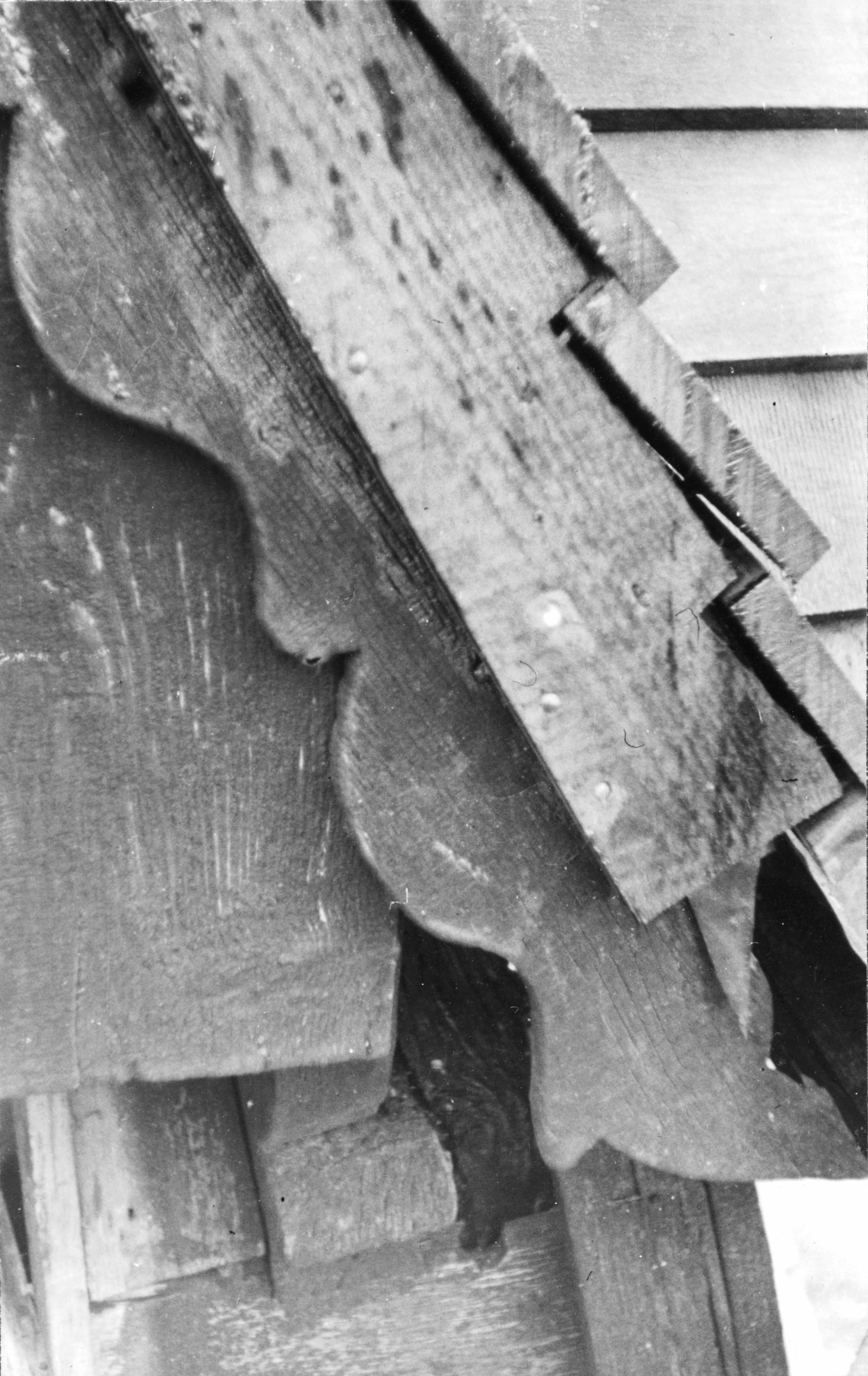 Klockstapeln, Ö. gavelröstets N. vindskiva. Drakhuvudet saknas.