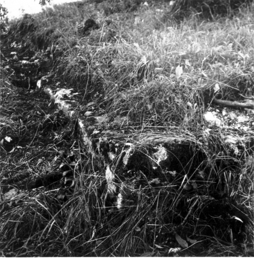Hornborga kyrkoruin. Från förundersökningen 1954. Kyrkans fundament framrensas.