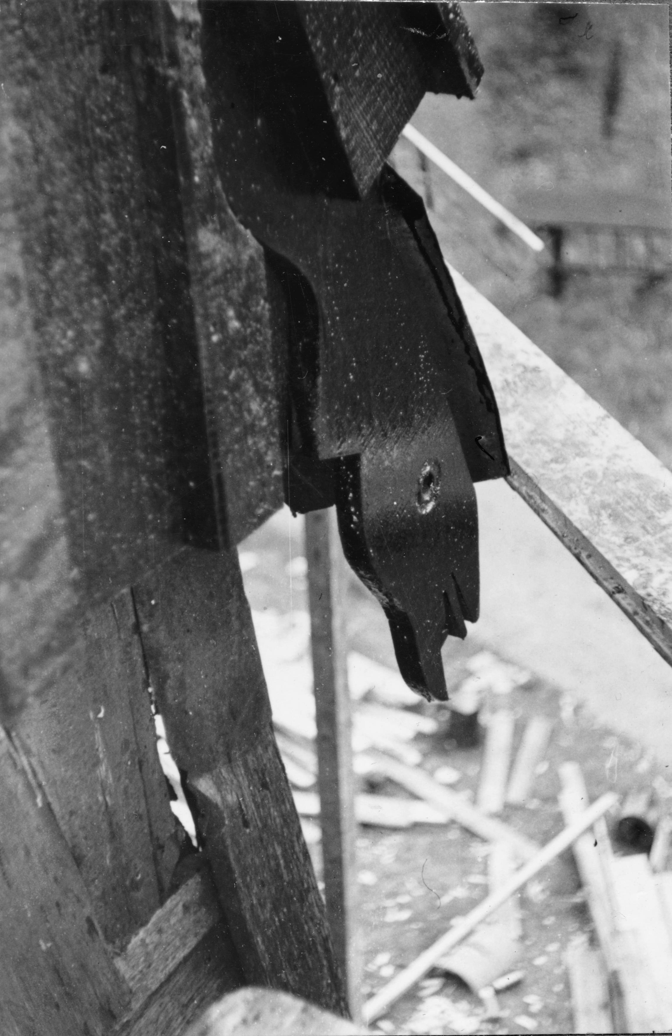 Klockstapeln, den i maj -55 uppsatta nya vindskivan (den Ö.) på södra gavelröstet .