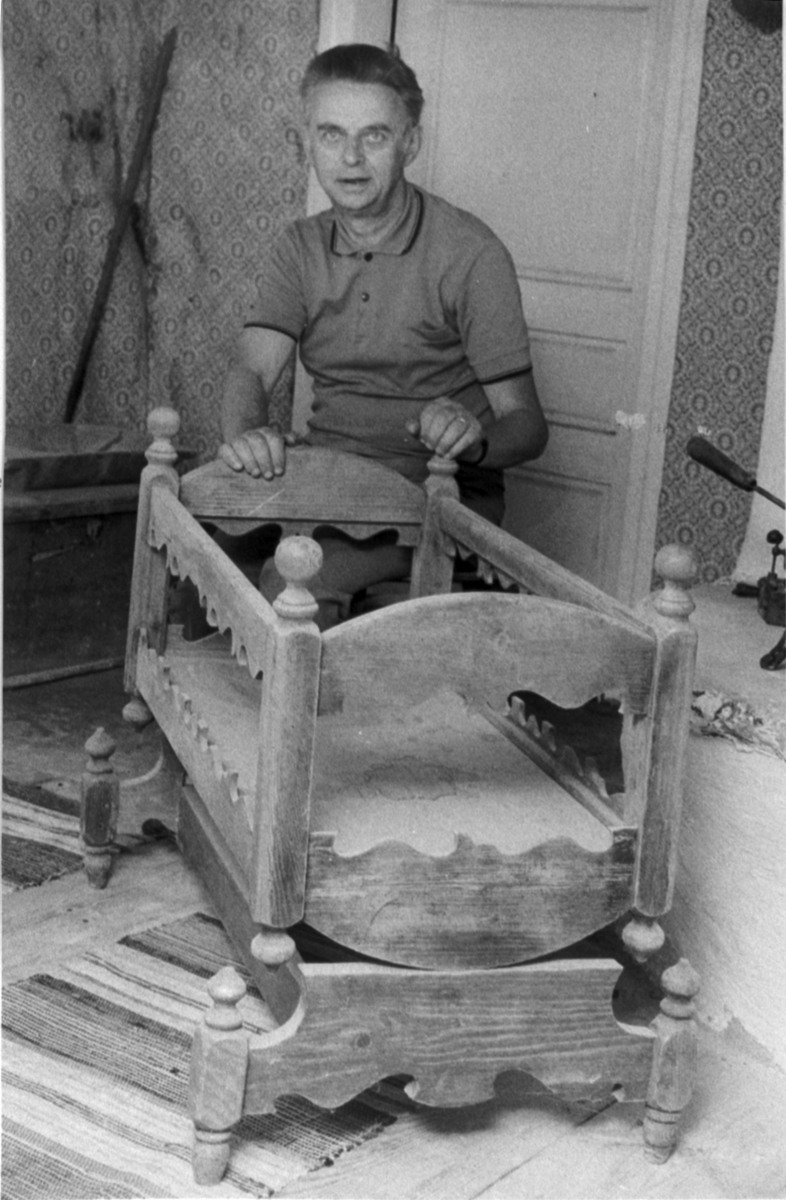 Enligt sägnen Georg Karl von Döbelns vagga. Vaggan är upphängd på ett stativ; består av fyra hörnstolpar med svarvade knoppar mellan vilka figursågade ramar fogats. Sidorna är öppna. Ev. har vaggan varit tygklädd.