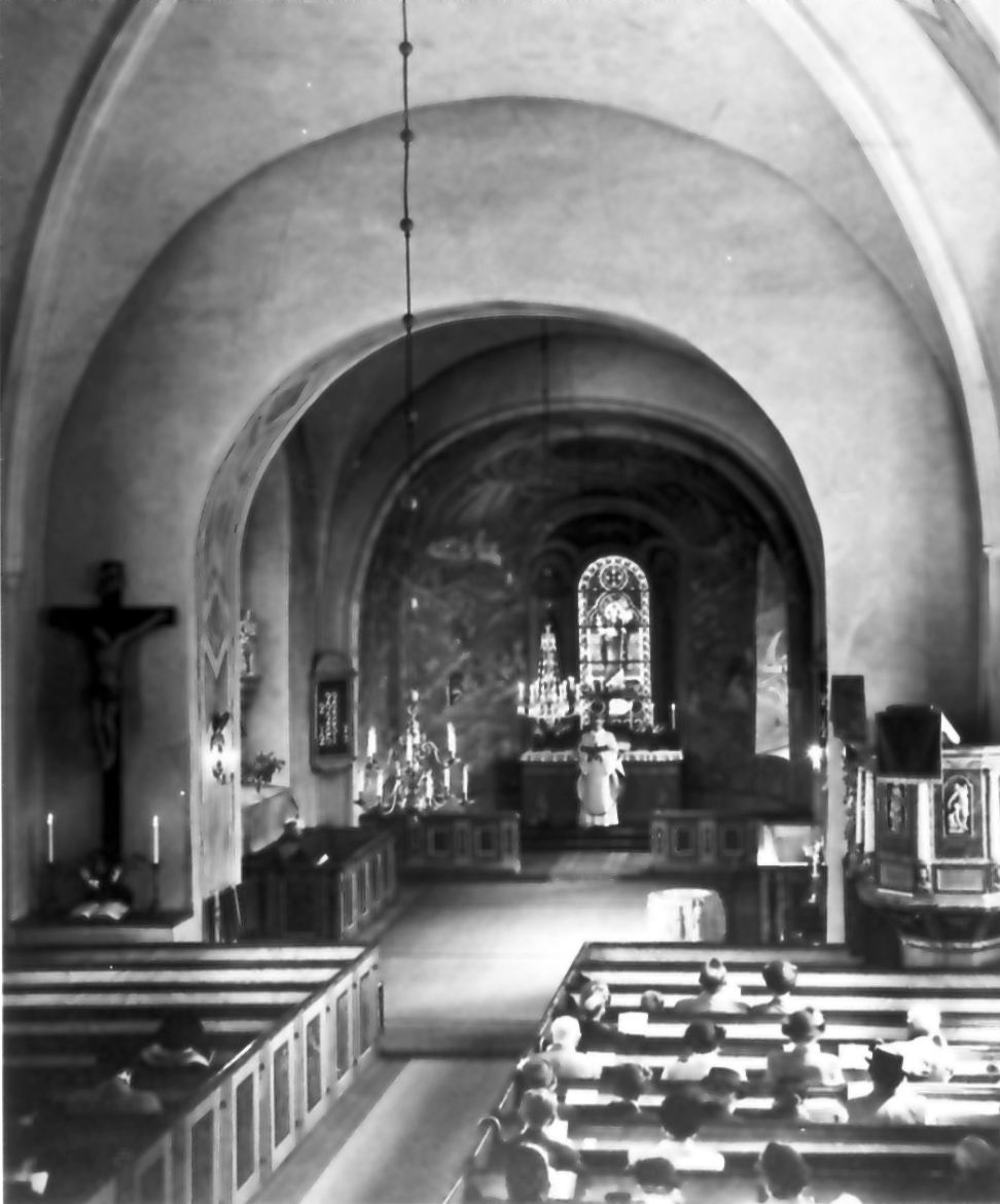 "Högmässa i S:t Olofs kyrka". Från utställningen "Falköping i bild" 1952.