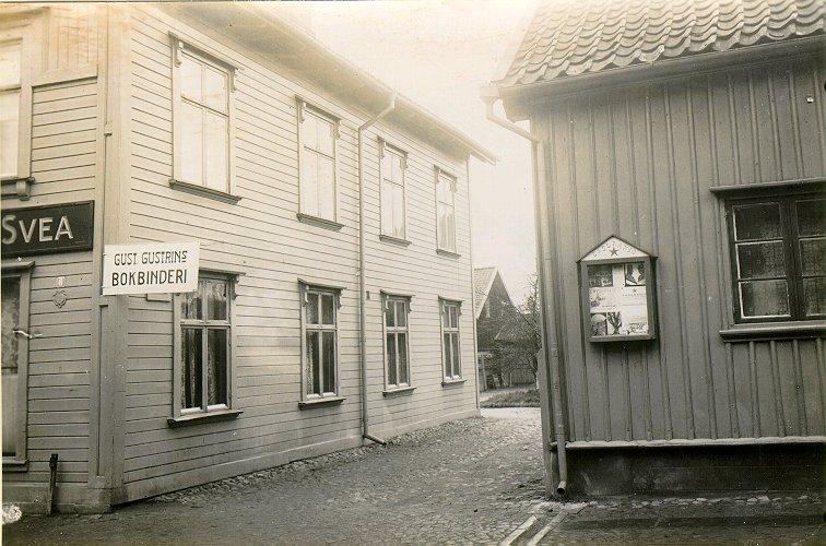 Till höger Storgatan 4. Liten gränd mellan de båda fastigheterna.